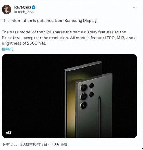 亲爱的数码爱好者们,你是否已经迫不及待地想要一睹三星S24的真容?最近,网络上关于这款新旗舰的爆料视频层出不穷,今天,就让我带你一起揭开三星S24的神秘面纱,看看这款手机究竟有哪些亮点和惊喜吧!